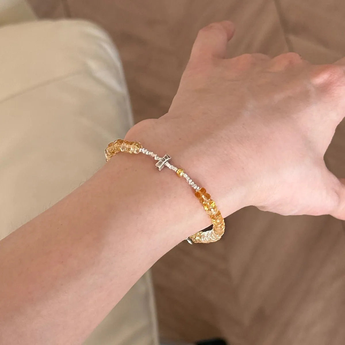 Браслет из тайского серебра 925 пробы с натуральным градиентным желтым кристаллом, символизирующий удачу и ежедневное процветание, с изысканным дизайном.