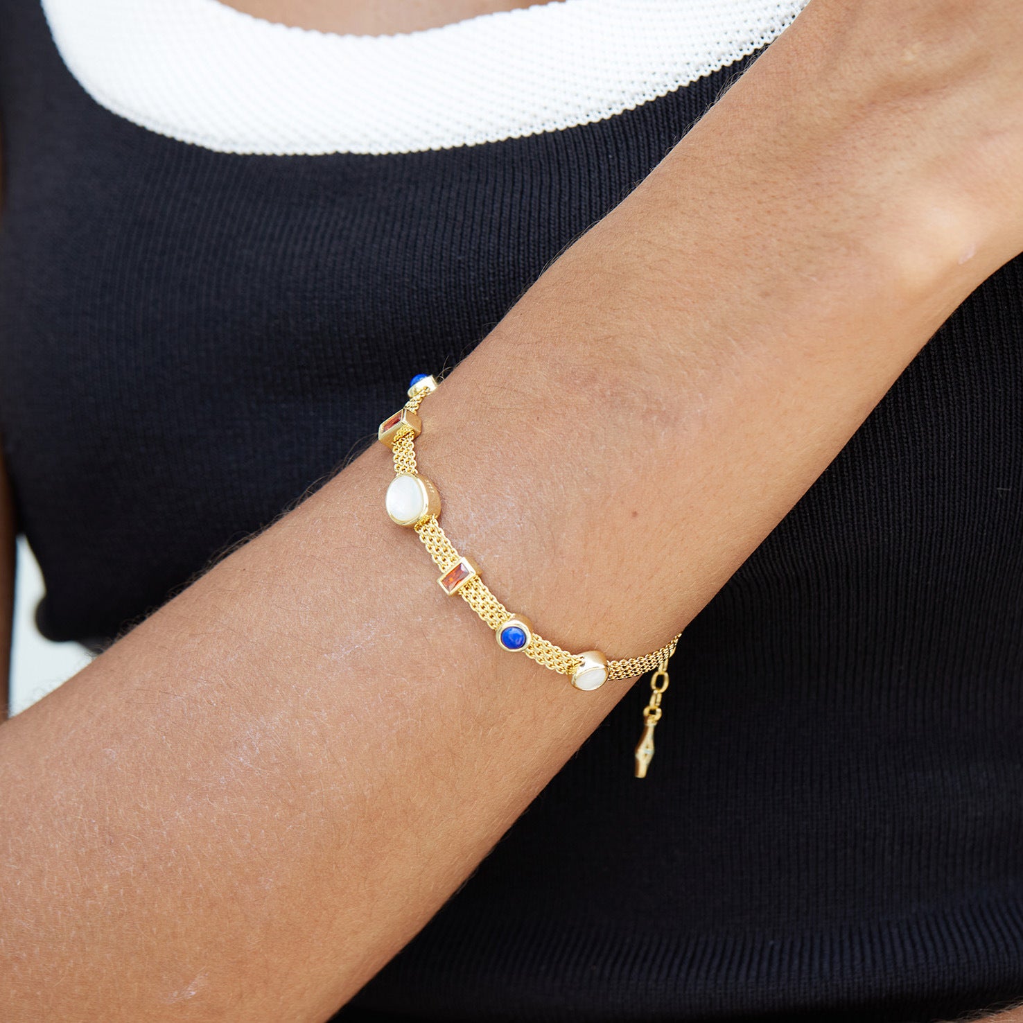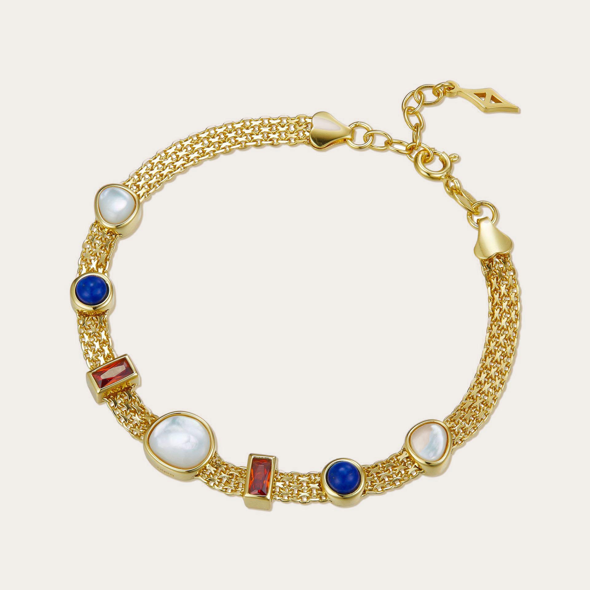 Браслет из серебра S925 с несколькими драгоценными камнями, плетеный, с нишевым дизайном, легкий, класса люкс, модные аксессуары для рук, ретро-драгоценные камни, TikTok Live